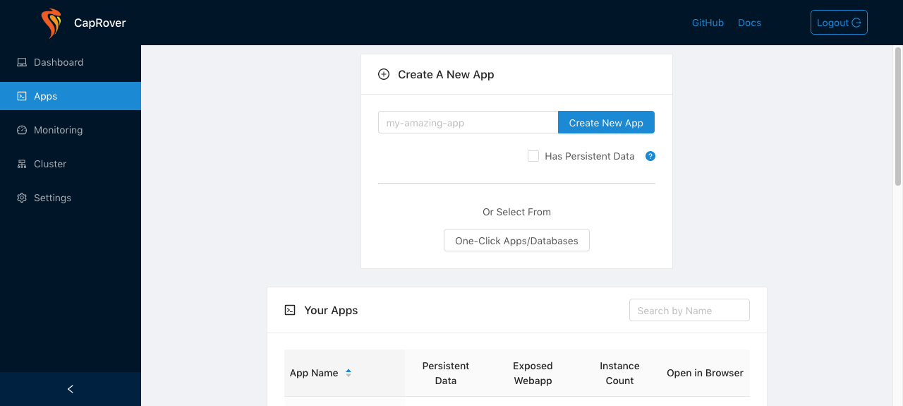 OK, now we will create a new application within our Caprover installation and deploy the djcap project.